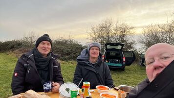 Nach dem Tauchgang haben wir uns mit einem warmen Teller von Volker leckerer Soljanka aufgewärmt. Bei heißen Getränken und dem leckerem Essen haben wir uns wieder aufgewärmt, Geschichten ausgetauscht und das Jahr gebührend eingeläutet.